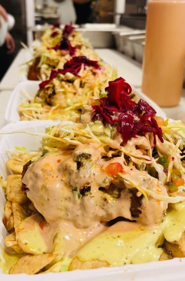 Papas Fritas Cargadas de Carne (Grilled Chicken or Steak +$1.50) Over French Fries $15.99