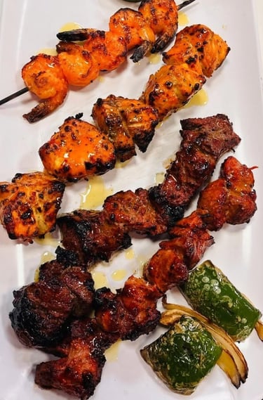 Pinchos Kebab Mar & Tierra (Shrimp & Steak) $26.50